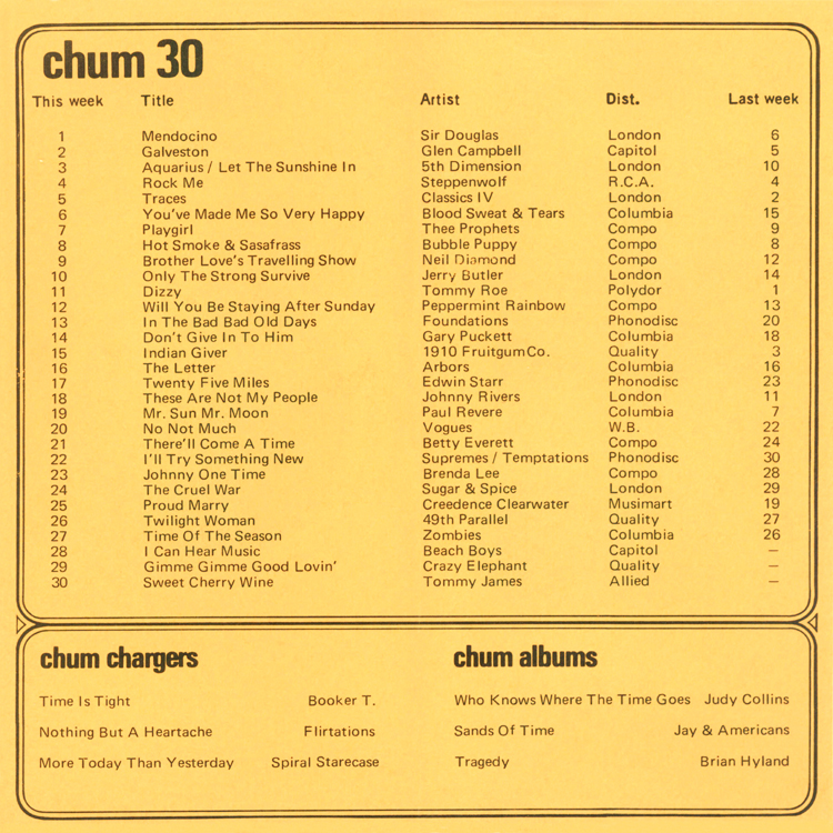 Chum Chart (Mar 29 1969)